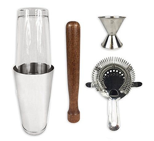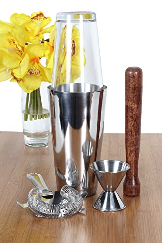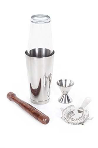 2dayship Edelstahl-Cash-Set, 5-teilig (Cocktail-Shaker, Mixing aus GlasJigger, Julep Abseiher darüber hinaus Muddler)