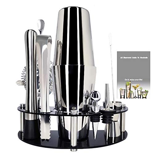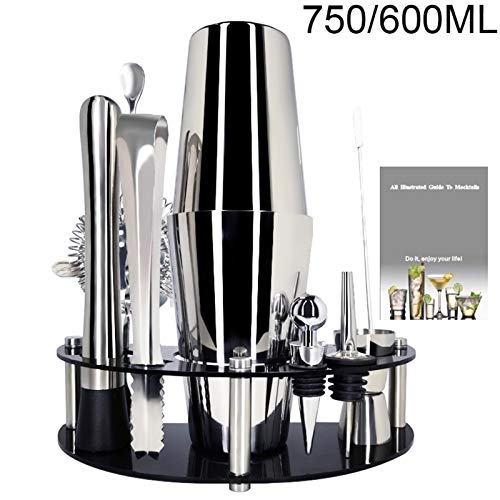 3. Verankert von einem 2-teiligen Boston-Cocktail-Shaker750 / 600 ml, 450/600ml (26 uch / 20oz, 20 / 15oz), um die Frustration der kalten Tins zusammen zu verhüten, die zusammen und zerbrochenes Glas vermeidenEiszangen, Mischlöffel, Alkoholausgießer + Abbreviieren, Flaschenstopper, Weinkorkenzieher, Getränkerezept, Eiskube nicht mehr da Edelstahl.