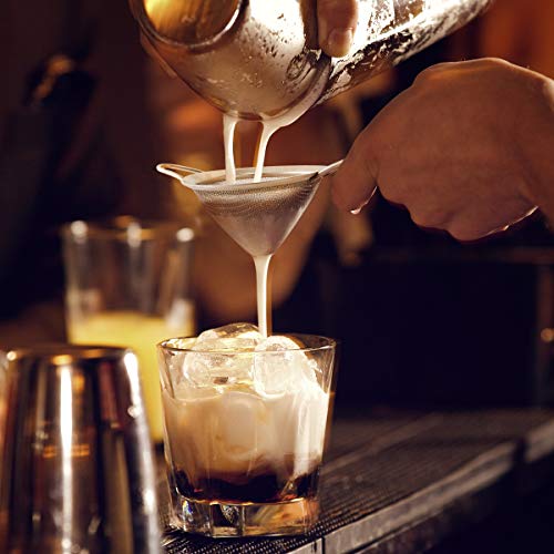 Feines Siebsieb ist gut geschweißt mit langem Griff und konischem Sieb, das auf Shaker oder Cocktailglas belastbar Haftstrafe verbüßen kann, ohne zu brechen, biegen oder sich zu verziehen. Ultrafeines Netz sorgt für maximale Speicherung kleiner Umstandswort.