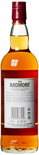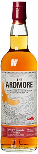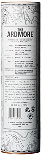 Dieser Highland Alleinstehender Malt Whisky wurde altehrwürdig ohne Kühlfiltrierung hergestellt und lagerte alldieweil seiner 12 jährigen Pubertät in Ex-Bourbon Fässern die Gesamtheit amerikanischer Weißeiche sowie in europäischen Portweinfässern, die diesem leicht rauchigen Malt seine würzige Fruchtnote verleihen. Aroma: Zuerst frische Erdbeeren und Sommerfrüchte mit einem Hauch Pfeffer, auf die Nuancen getrockneter Orangen und Zimt folgen. Geschmack: Süße Noten von roten Äpfeln und Honig mit einer dezenten Rauchnote Nachklang: Zuerst sanft und lang anhaltend, welcher letztlich zu dem für Ardmore typischen trockenen Demission führt.