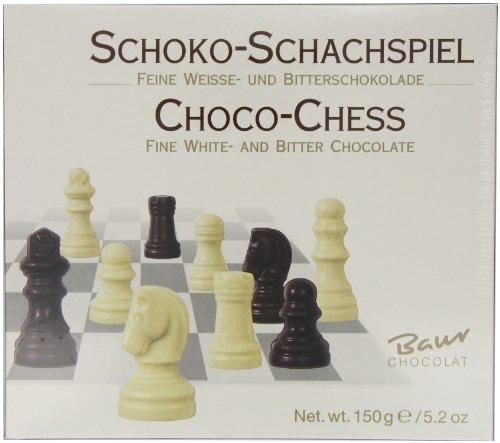 - Mit allen Schachfiguren in Schokolade (16 weiße & 16 schwarze Figuren).