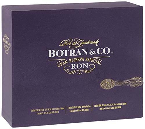Zur Feier des 75. Jahrestages wurde diese spezielle Rum-Geschenkbox von Botran auf den Absatzgebiet gebracht. Es handelt sich um eine auf 9.972 Flaschen limitierte Sonderabfüllung, welche in einer edlen Holzkiste angeboten wird. Enthält: – 500 ml Botran & Co „Gran Reserva Especial“ (Ein Blend leer Family Private Reserve Rums, welche zwischen 5 darüber hinaus 30 Jahren in weißen amerikanischen Eichenfässern ablagern. Diese Fässer wurden vorher anstatt die Lagerung von Bourbon Whiskies, Sherries darüber hinaus Portwein verwendet) – 50 ml Botran & Co „B“ (Rum mittels Gewürzen: Nelken, Zimt, Muskat) – 50 ml Botran & Co „C“ (Rum mittels Zitrusfrüchten: Orangen, Mandarinen, Limetten darüber hinaus Grapefruit) – eine Glaspipette – Booklet Sie können den Botran & Co „Gran Reserva Especial“ mittels Beihilfe der Pipette darüber hinaus den Rum-Sorten „B“ darüber hinaus „C“ jeder nach Ihrem Geschmack verfeinern.