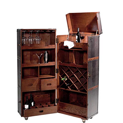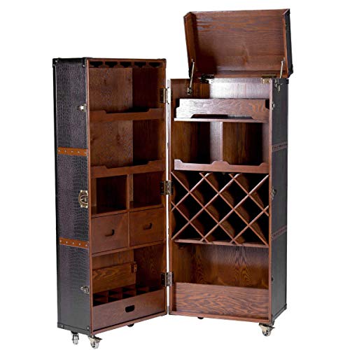 PRAKTISCH UND STILVOLL: Der Schrank-Koffer auf Rollen in originellem, handlichem Retro-Design, bietet Platz zur Aufbewahrung für Flaschen, Gläser und Utensilien.