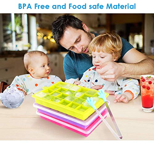 ❄❄ 3 Fächer, 3 Deckel und 1 Eisclip — Das dreifarbige Silikon-Eisfach hat einen Deckel (grün / lila / rot) und einen kleinen Eisclip für den einfachen Zugriff auf Eiswürfel. Jeder Eiswürfel ist 4 * 6, insgesamt 24 Stück, ein Satz von 72 Eiswürfeln.