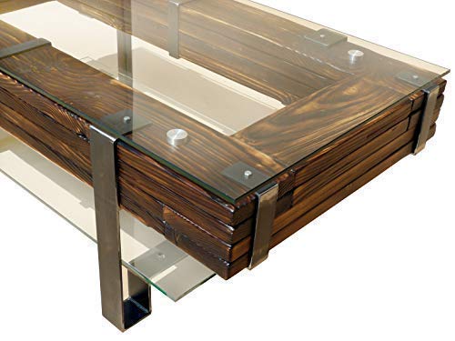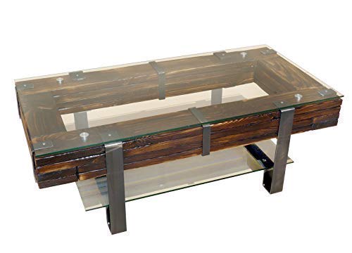CHYRKA® Couchtisch Wohnzimmertisch LEMBERG Loft Vintage Bar Industrie Design Handmade Holz Glas Metall (120×60 cm H=40…