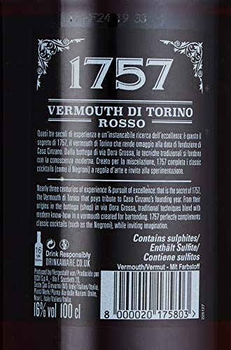 Der Name Cinzano 1757 geht auf das Gründungsjahr zurück, als Giovanni Giacomo und Carlo Stefan Cinzano ihre Destillerie in den Bergen unweit von Turin eröffneten.