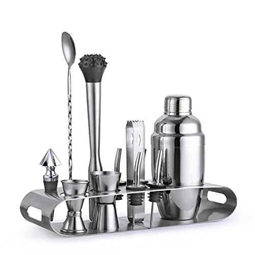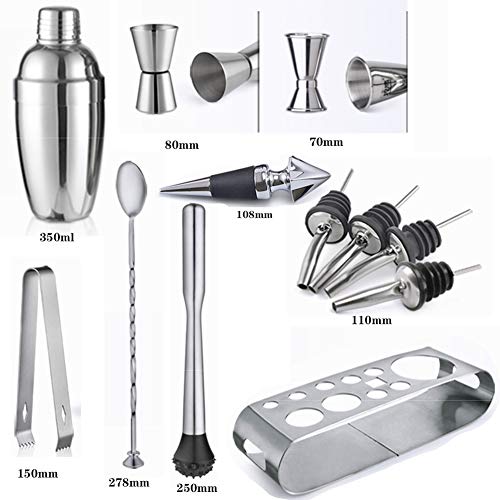 ● alles, was Sie brauchen: ein Satz von 12 hochwertigen Cocktail-Tools für Barkeeper, darunter 1 350 ml Shaker, 2 Doppelköpfe-Messbecher, 4 Weinausstöße, 1 Eisclip, 1 bar Löffel, 1 Eishammer, 1 Edelstahl Chrom- Plattierter Weinstopper, Lagerständer die Gesamtheit Edelstahl.