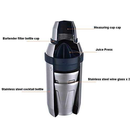 Shaker-Set 0,59 l, tragbarer Cocktail-Shaker für den Außenbereich mit Edelstahlbecher und Entsafter, für Camping, Büro, Reisen. Sie können ständig und überall Cocktails mixen und genießen.