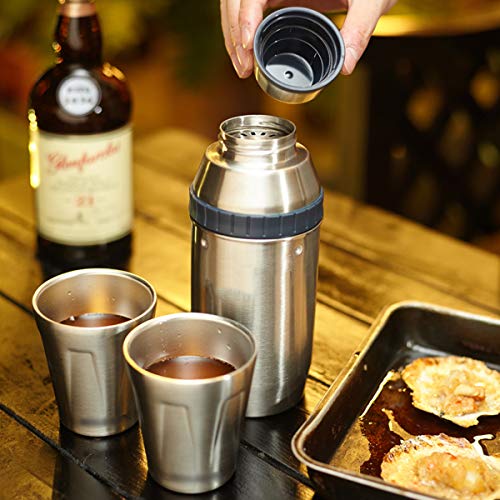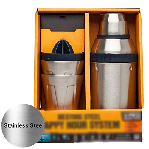 Shaker-Set 0,59 l, tragbarer Cocktail-Shaker für den Außenbereich mit Edelstahlbecher und Entsafter für Camping, Büro und Reisen