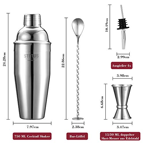 Cocktail Shaker, STNTUS Cocktail Set, 750ml Cocktailshaker, Cocktail Shaker Set, Bar Zubehör, Cocktail Mixer mit Jigger…