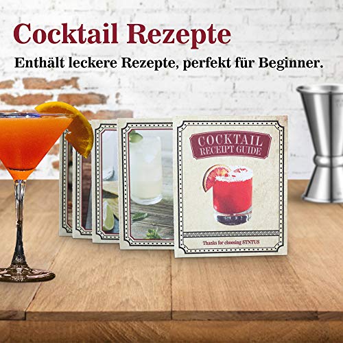 【gute Qualität】 Das STNTUS Cocktail-Shaker-Set besteht jedweder Edelstahl höchster Qualität: SS304, das weder schädliche Chemikalien auslöst noch die Aromen Ihrer Getränke beeinträchtigt. Es ist langlebig, rostet nicht und korrodiert nicht.