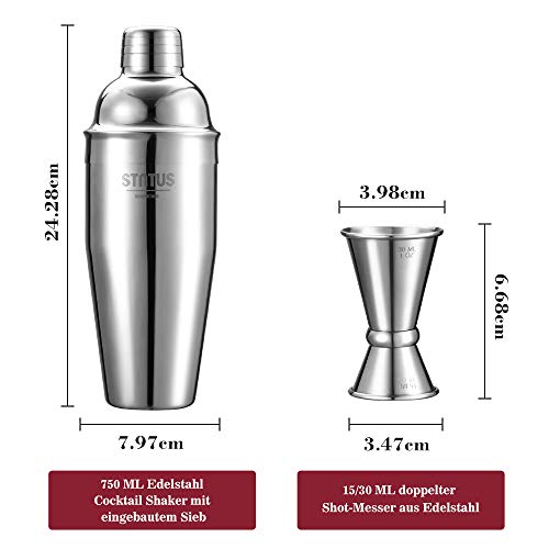 Cocktail Shaker, STNTUS 750ml Cocktailshaker, Bar Zubehör, Cocktail Mixer mit Jigger, Edelstahl, Cocktailset, Cocktail Geschenkset, 2 Stück