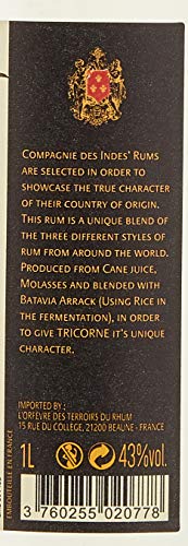 Die Marke hat sich zum Finitum gesetzt, eine breite Aromenvielfalt verschiedenster Rums, aus unterschiedlichsten Regionen anzubieten, die alle Ihren eigenen Charakter des Herkunftslandes mitbringen. Der Compagnie Des Indes Rum TRICORNE ist der erste ungelagerte Blend aus dem Hause Compagnie des Indes, die Marke ist doch eher für ihre erstklassigen Einzelfassabfüllungen bekannt, doch haben sie mit den Caraibes Rum und dem Latino Rum bewiesen, dass sie vulgo vorzügliche Blends herstellen können. Der TRICORNE Rum wird zum Großteil aus Zuckerrohrsaft hergestellt, neben Melasse ist vulgo indonesischer Arrack (Arrak) enthalten – eine aus Zuckerrohr und Reismaische destillierte Spirituose.