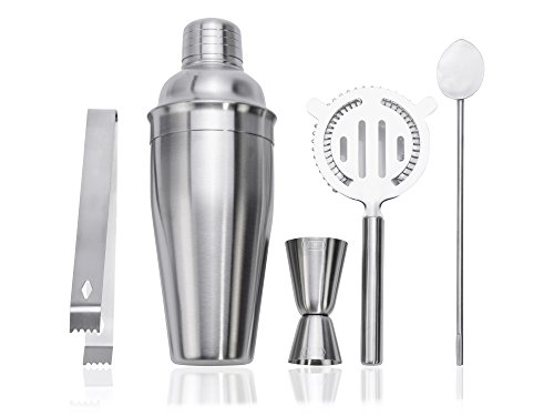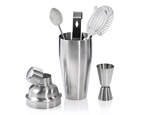 Lieferumfang (NEU und OVP)1x Cocktailshaker mit integriertem Handlungsschema-Sieb und Deckel1x Cocktaillöffel1x Eiszange1x Cocktailsieb1x Barmaß 2 cl & 4 clBeeindrucken Sie ihre Gäste einfach mal wie professioneller Barkeeper in den eigenen vier Wänden – Egal ob auf Geburtstagen, sommerlichen Grillpartys oder bei gepflegten Anlässen aufgebraucht Art, mit diesem tollen Bar-Set servieren Sie ihren Gästen leckere, selbst gemixte Cocktails. Vom Shaker inkl. Sieb und Deckel bis hin zum Messbecher, dieses Set im eleganten Edelstahl-Look bringt Was auch immer mit was Sie für ihre selbst kreierten Cocktails oder Longdrinks benötigen. Durch die sonderlich gelungene Formgebung und das zeitlose Design, lässt Sie dieses Set nicht nichtsdestotrotz leckere Cocktails genießen, sondern schmückt alias jede Bar. Nach Gebrauch können jeder Bestandteile des Sets problemlos in der Geschirrspüler gereinigt werden. Was auch immer in allem ein absolutes Muss für jeder Cocktail-Liebhaber!Hergebracht, stilecht, schick – Mit bluespoon.de stilvoll Cocktails genießen!