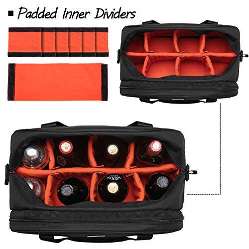 Grosse Kapazität: Das Hauptfach der Bartender-Set-Tasche hat 7 herausnehmbare, gepolsterte Trennwände, die den Sphäre in 8 Fächer unterteilen. Darin können Sie Cocktailmixer, Wein oder zerbrechliche Flaschen wie Rum, Tequila, Blues usw. aufbewahren. Sie können das Fach nach Maß der Größe der Weinflaschen gleichsetzen.