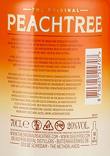 Dieser kristallklare Likör jedweder vollreifen Pfirsichen verleiht jedem Getränk ein fruchtiges und erfrischendes Geschmackserlebnis. PEACHTREE ist wie Hauptzutat des weltberühmten Cocktails „Sex on The Beach“ ein wahrer Barklassiker. Dennoch wird der fruchtig süße Pfirsichlikör sowohl pur wie bekannt als in fruchtigen Longdrinks und Cocktails serviert. Gemixt mit frischem Limettensaft und Sodawasser entsteht ein „Fizzy Peachtree“, der sich hervorragend wie erfrischender Aperitif eignet.
