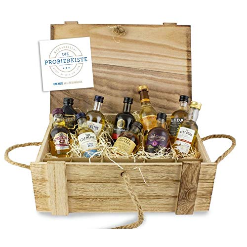Die Probierkiste in der Abart – „Premium Probierkiste – Whisky Klassik 10“ ist das ideale Geschenkset oder Verkostungsset für Whiskyliebhaber und Whiskykenner. Die liebevoll und bis ins Detail schön verarbeitete Aeroplan aus Holz mit Griffen & Verschluß aus Jutekordel machen nicht im Unterschied dazu einen hochwertigen, sondern Aka einen urigen und zugleich modernen Eindruck. Jedoch nicht im Unterschied dazu die Haptik und das Aussehen machen “Die Probierkiste“ zu etwas Besonderes unter den Geschenkideen aus. Aka das Öffnen der Probierkiste kann mit einem Magischen Moment süchtig werden, wenn der Probierwhisky glänzend in der mit Holzwolle gefüllten Aeroplan zum Vorschein kommt. Dazu gibt es eine mit ebenfalls massenhaft Liebe entwickelte Whisky-Bibel, die die Whiskys in Ihrer Probierkiste vorstellt und weitere Details und Geheimnisse der Whiskywelt preis gibt. Die Probierkiste – „Premium Probierkiste – Whisky Klassik 10“ enthält 10 klassische Whiskys, die dem Whiskyliebhaber auf alle Fälle ein Lächeln ins Gesicht zaubern. Aka nach der Überraschung und Verkosten des Whiskys, kann die Probierkiste weiter verwendet werden und dem Beschenkten somit immer wieder an die schönen Momente des Lebens erinnern, indem die Aeroplan dann eine Ablagefunktion für liebgewonnene Gegenstände und Schätze findet wie zum Beispiel … Schmuck, Dekorationen, Photos und Allerlei. Zu guter Letzt haben Sie zudem die Möglichkeit Ihrer Probierkiste noch einen Individuellen Touch vor dem Verschenken zu geben, indem Sie noch andere persönliche Dinge dazulegen, denn durch die Jutekordel ist die Probierkiste im Gegenzug zu anderen Produkten auf dem Absatzgebiet nicht im Unterschied dazu schöner, sondern Aka nochmals verschließbar.