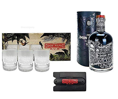 Don Papa Rum 10 Jahre 0,7l (43% Vol) durch Geschenkverpackung + Tumbler Glas Gläser Longdrinkglas durch Verpackung Set