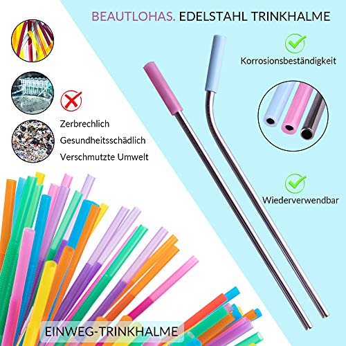 【SPAREN GELD& ZEROWASTE】Die Trinkhalme können in der Abwaschmaschine oder mit der beiliegenden Bürste gereinigt und aber und abermal verwendet werden. Es kann fast 5 Jahre recyceln! Sparen Sie die Geld am Wegwerfsprodukt, Kein Plastik und Papier mehr, reduziert die Ausschuss. Mit wiederverwendbare Strohhalme wurde ein Label für Umweltschützer.