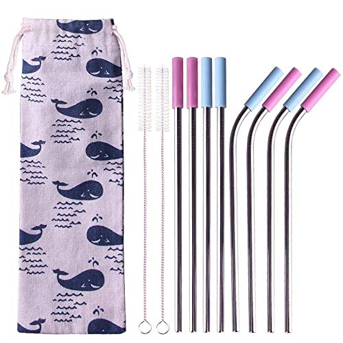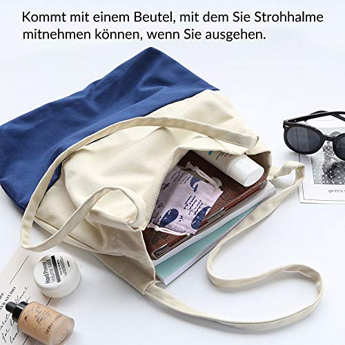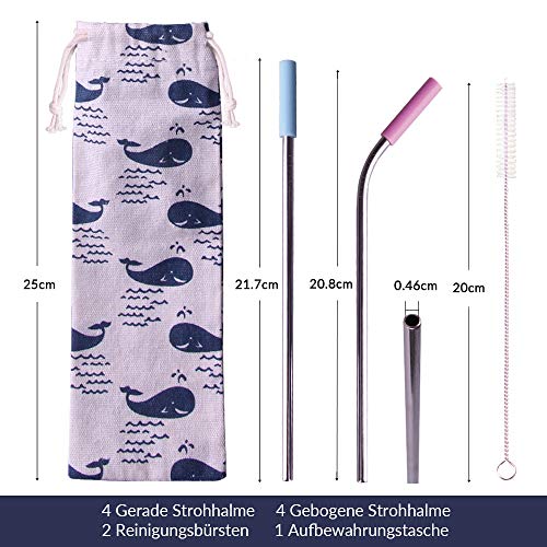 【BREITE VERWENDEN】Dieses Set enthält 4 gerade (21.7cm) und 4 gebogene (20.8cm) Strohhalme und 2 Reinigungsbürsten,eine Stoffbeutel. Durchmesser 0.46 cm. Eignen sich ideal zum Trinken von cremigen Milchshakes, Cocktails oder Smoothies!