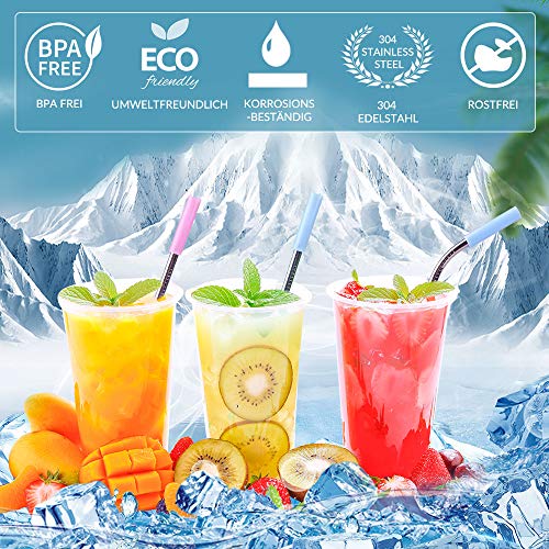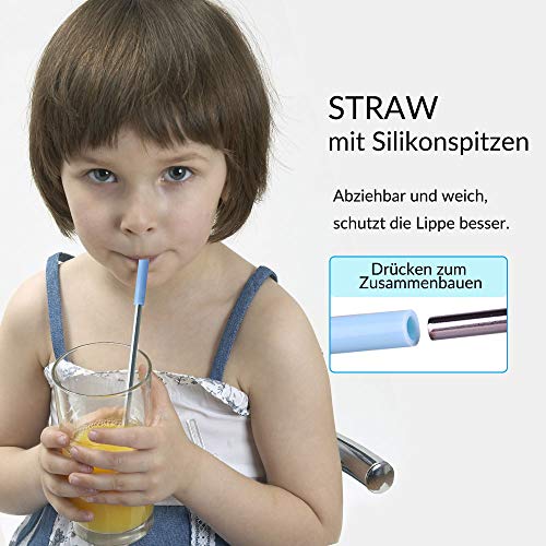 【LEBENSMITTELQUALITÄT & KINDERSCHUTZ】Gefertigt aufgebraucht 304 Edelstahl für den Lebensmittelbereich, sind unsere Metallstrohhalme rostfrei und in der Abwaschmaschine waschbar. Unsere Trinkhalme hinterlassen keinen Metallgeschmack,100 % Geschmacksneutral. Dank seiner weiche Silikonspitze, keinen Acht geben die Verletzte der Kinder.