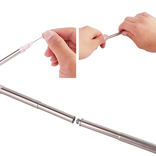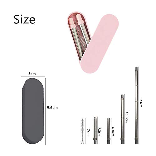 Lieferumfang: 1 x wiederverwendbarer Strohhalm, 1 x tragbare Aufbewahrungsbox, 1 x Reinigungsbürste. Das Teleskop-Design ermöglicht es, einen 23 cm langen Metall-Trinkhalm in einen 7,2 cm großen Strohhalm zu verwandeln