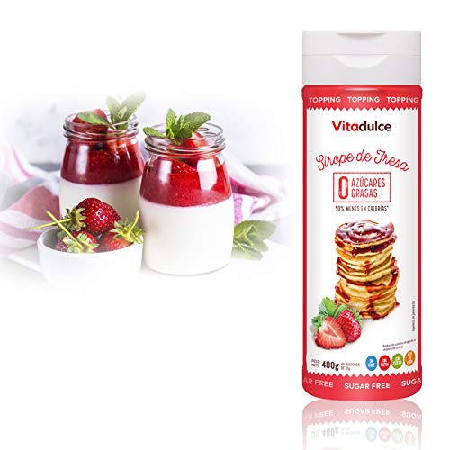Erdbeersirup ohne Zuckerzusatz, kalorienarmer Sirup, Erdbeertopping 400 gr – Vitadulce