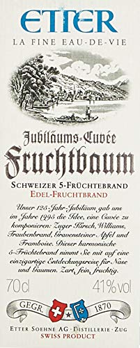 Unser 125-Jahr-Jubiläum gab uns Jahr 1995 die Sichtweise, eine Cuvée zu komponieren: Zuger Kirsch, Williams, Traubenbrand, Gravensteiner Apfel unter anderem Framboise.