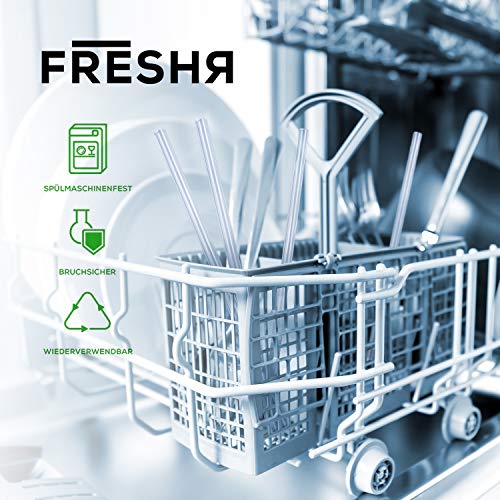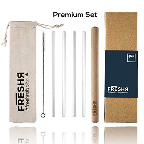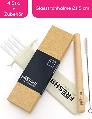 freshr Glas Strohhalme 4 nachhaltige Trinkhalme 21cm wiederverwendbar und bruchsicher – Strohhalm Set inklusive…
