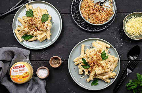 Gazi Kashkaval Schnittkäse in Vakuumverpackung leer 100% Kuhmilch mit mikrobiellem Lab, 45% Feist i.Tr. in Salzlake, Premium Qualität, vegetarisch, Kasar peyniri, zum orientalischem Frühstück, als Pizzabelag, zum Überbacken von Aufläufen