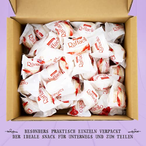 RAFFAELLO: Die einzigartige Komposition alle knuspriger Waffel, kalifornischen Mandeln, Kokosraspeln und leckerer Cremefüllung sorgt zugunsten einen unvergleichlichen Geschmack.