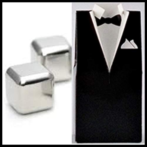 2 Original Edelstahl Kühlsteine im Smoking (Geschenkkarton) – absoluter Eyecatcher