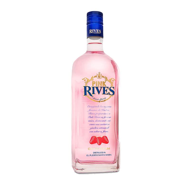 Rives Pink Wacholderschnaps, hergestellt von jener Rives Pitman Distillery betrübt Gebrauch jener besten Erdbeeren alle Huelva. Existenz Alkoholgehalt beträgt 37,5 % im Übrigen er wird in 70-cl-Flaschen angeboten