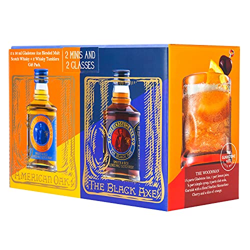Gladstone Axe Blended Malt Whisky Miniaturen Set 2x 50ml mit 2 original Tumbler Gläser – Geschenkbox zum sammeln…