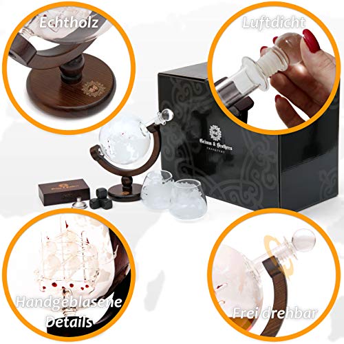✔ BESONDERES, AUßERGEWÖHNLICHES GESCHENK: Unsere mundgeblasene Globus Karaffe ist mit zwei passenden geätzten, runden Globus Gläsern, einem luftdichten Glasverschluss, einem dunklen Halter aus Echtholz, einem Trichter aus Edelstahl und 9 hochwertigen Whiskey Steinen auch ein perfektes Geschenkset für Genießer. Dazu wird das Whiskey Set in einer passenden, edlen Verpackung zu Ihnen geliefert.