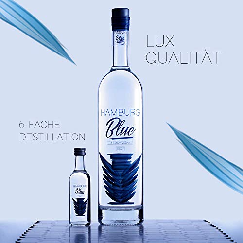HAMBURG BLUE Premium Vodka“DADDYBLUE + BABYBLUE“ 1x 0.7 l Flasche + 1x 0.05 l Flasche | 6 fach destilliert | Bernstein filtriert | LUX klassifiziert | einzigartig sanfter Geschmack | 40% vol.