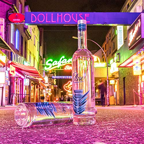 PUR UND DIREKT – Hamburg Blue ist ein Unterhaltung in Moscow Mule, Cocktails, Longdrinks oder pur on the rocks – WOW-Effekt benachbart jedem Schluck – 1x 0.7 l Flasche „Daddyblue“ + 1x 0.05 l Flasche „Babyblue“