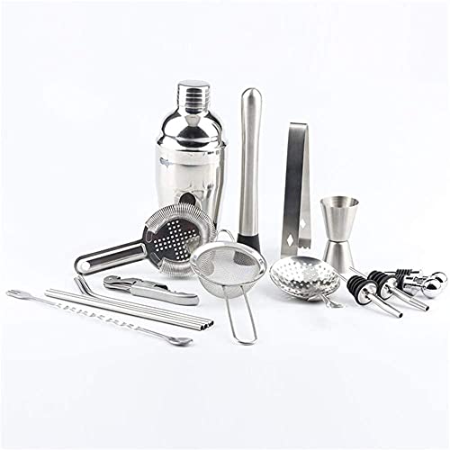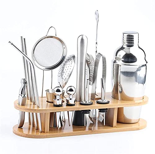 17 + 1 Cocktail Shaker Sets: 1 * Cocktail Shaker, 1 * Bambusständer, 1 * Sieb, 1 * Mischlöffel, 1 * Jigger, 1 * Korkenzieher, 1 * Eiszangen, 1 * Mudder, 2 * Flasche ausgießer, 4 * Gerade Stroh, 2 * Stopper, 1 * Mesh-Eissieb, 1 * Julep-Sieb.