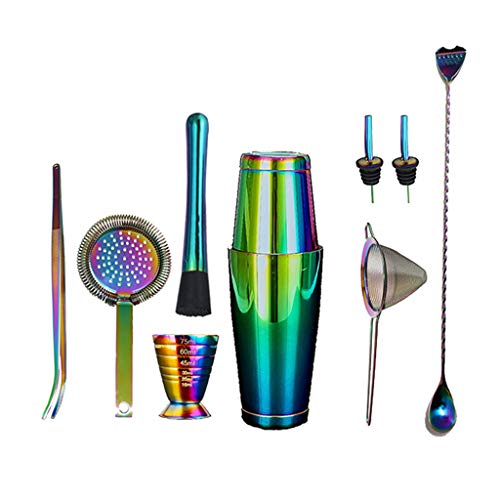 Bunte Cocktail Shaker Bar Set: gewichtete Boston-Shaker, Cocktailsieb, magischer Jigger, Barlöffel,