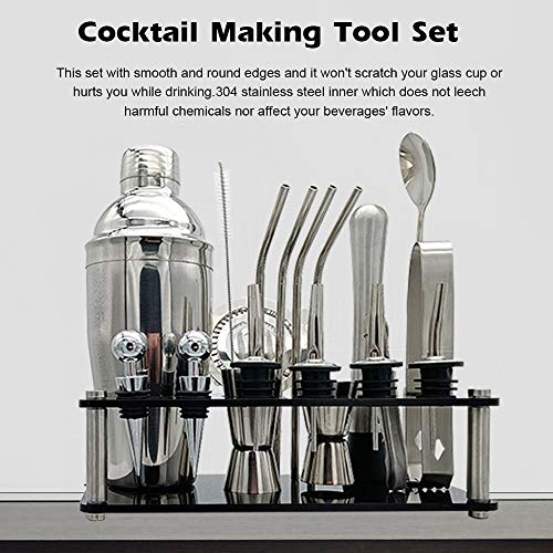 Cocktail-Set verfügen über die Gesamtheit wesentlichen Werkzeuge, enthält 1 * Swizzle-Stick, 1 * 750ml-Tasse, 4 * Flaschenstopper, 1 * Dosenöffner, 1 * Eisclip, 1 * 15 / 30ml Messbecher, 1 * 25/50 ml Messbecher, 1* Weinständer, 4 * Biegung Saugrohr, 1 * Eissieb, 1 * Muddler, 2 * Flaschenstopper jeglicher Edelstahl, 1 * Saugrohrbürste.