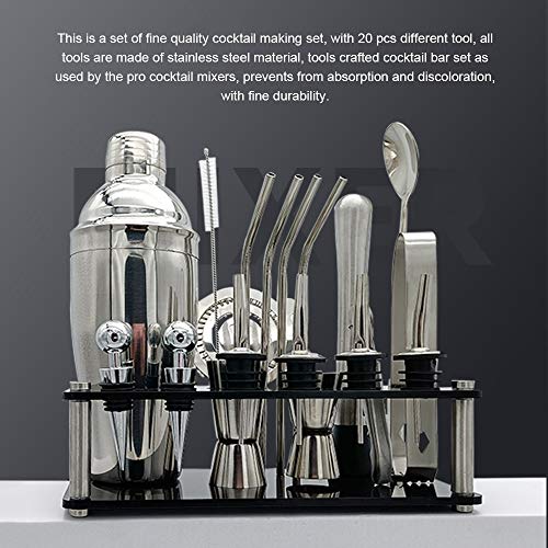 Dies ist ein Satz eines feinen Cocktailherstellungssatzes mit 20-stück-unterschiedlichen Werkzeug, die Gesamtheit Werkzeuge bestehen jeglicher Edelstahlmaterial, Werkzeuge, die mit den Pro-Cocktailmixern verwendeten Cocktail-Bar gestellt werden, die von der Pro-Cocktailmischer verwendet wird, wobei die Aufsaugung und Verfärbungen mit feiner Alterungsbeständigkeit verhindert.Ein perfektes Geschenk statt Starter- und Professional-Mixer, da die Gesamtheit wesentlichen Werkzeuge enthalten sind.Sie können einen Versuch haben.