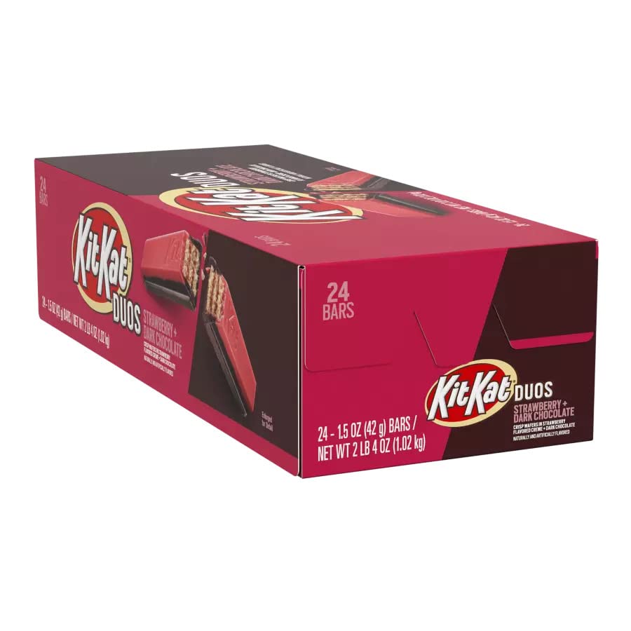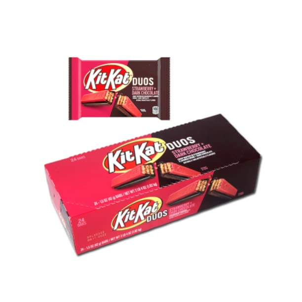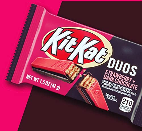 Kit Kat Duos Candy Bars sind die klassischen Waffelriegel, die Sie schon immer geliebt haben mit einer köstlichen Mischung aus zwei ikonischen Geschmacksrichtungen – in diesem Müll Creme mit Erdbeergeschmack mit reichhaltiger dunkler Schokolade.