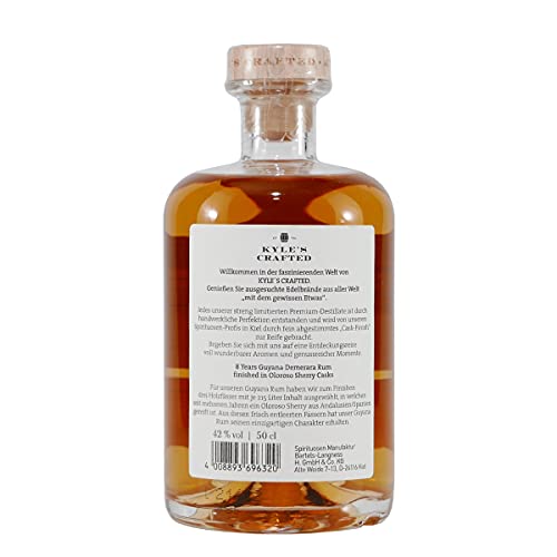 Für diesen Guyana Rum haben die Bartels-Langness Spirituosen-Profis zum Aufwerten drei Holzfässer mit je 215 Liter Inhalt ausgewählt, in welchen seit mehreren Jahren ein Oloroso Sherry aus Andalusien/Spanien gereift ist. Aus diesen frisch entleerten Fässern hat Kyle’s Crafted Guyana Rum seinen einzigartigen Charakter erhalten.