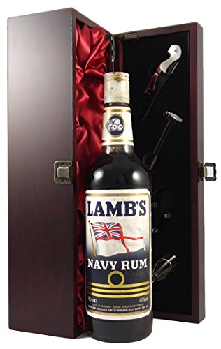 Lamb’s Navy Rum 1980’s Bottling in einer mit Seide ausgestatetten Geschenkbox, da zu 4 Weinaccessoires, 1 x 750ml