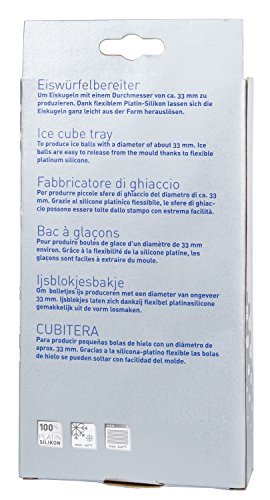Perfekt für den kühlen Genuss: Eiskugeln mit einem Durchmesser von 3,3 cm. Dank dem flexiblen und kältebeständigen Material Silikon lassen sich die Eiswürfel jeglicher leicht Leer der Form Abspalten.