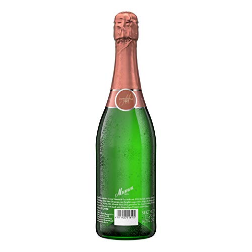 Dieser frische Rosé ist ein geschmackliches Erlebnis in Jahrgangsqualität. Feine Aromen von Johannisbeere und Kirsche Nachdruck verleihen die fruchtig-spritzige Art von Mumm Rose Dry. Das langanhaltende Perlenspiel ist ein besonderes Qualitätskriterium. Man trinkt Mumm Sekt Rosé Jahrgangssekt zu den festlichen Anlässen des Jahres.