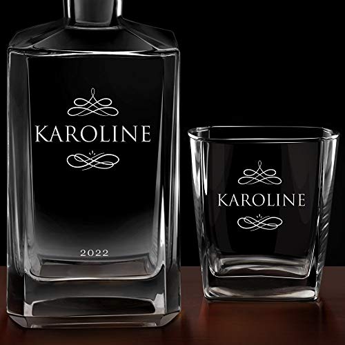 🎁 STILVOLLES WHISKY GESCHENKSET: das gravierbare Whisky Dekanter Set beinhaltet eine 700ml Whiskykaraffe und 4 klassische 250ml Whisky Gläser. Das Whisky Set überzeugt mit eckigem Design und der hochwertigen Vollziehung. Es ist ideal für Whiskey, Scotch, Bourbon, Rum oder Cognac.