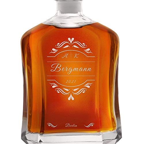 🎁 STILVOLLES WHISKY GESCHENKSET: das gravierbare Whisky Dekanter Set beinhaltet eine 700ml Whiskykaraffe und 4 klassische 250ml Whisky Gläser. Das Whisky Set überzeugt mit schlichtem Schliff und der hochwertigen Transaktion. Es ist ideal für Whiskey, Scotch, Rum, Bourbon oder Cognac.