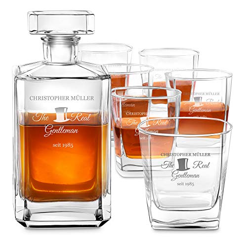 💎 ELEGANZ: Die Whiskykaraffe sowie die im Set enthaltenen 6 Whiskygläser überzeugen mit schlichtem Schliff, eckigem Design, ihrer ansprechenden Ästhetik und der hochwertigen Vollzug. Die klassische Glasstruktur hebt die schlichte Eleganz des Whisky-Sets hervor und in Verbindung mit der persönlichen Gravur wird es zu einem einzigartigen hinwieder zugleich praktischen Geschenk für lange Zeit!