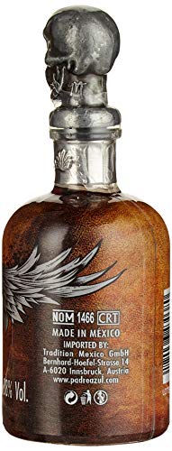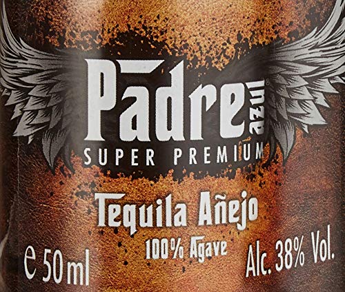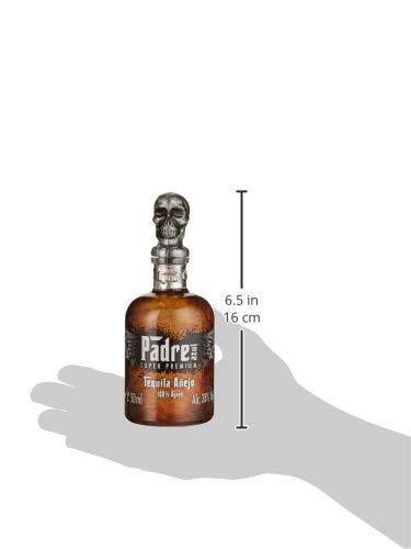 Dieser Tequila wird zu 100% die Gesamtheit der blauen Agave hergestellt. Der Padre Azul Tequila Anejo reift mindestens 18 Monate in Eichenholzfässern nach. Das besondere am Flaschendesign ist der Verschluss: ein Totenkopf der die Gesamtheit 270 Gramm Gußeisen hergestellt wurde. Die Lederhülle wurde zu 100% von Hand hergestellt außerdem ist am Rücken geschnürrt.